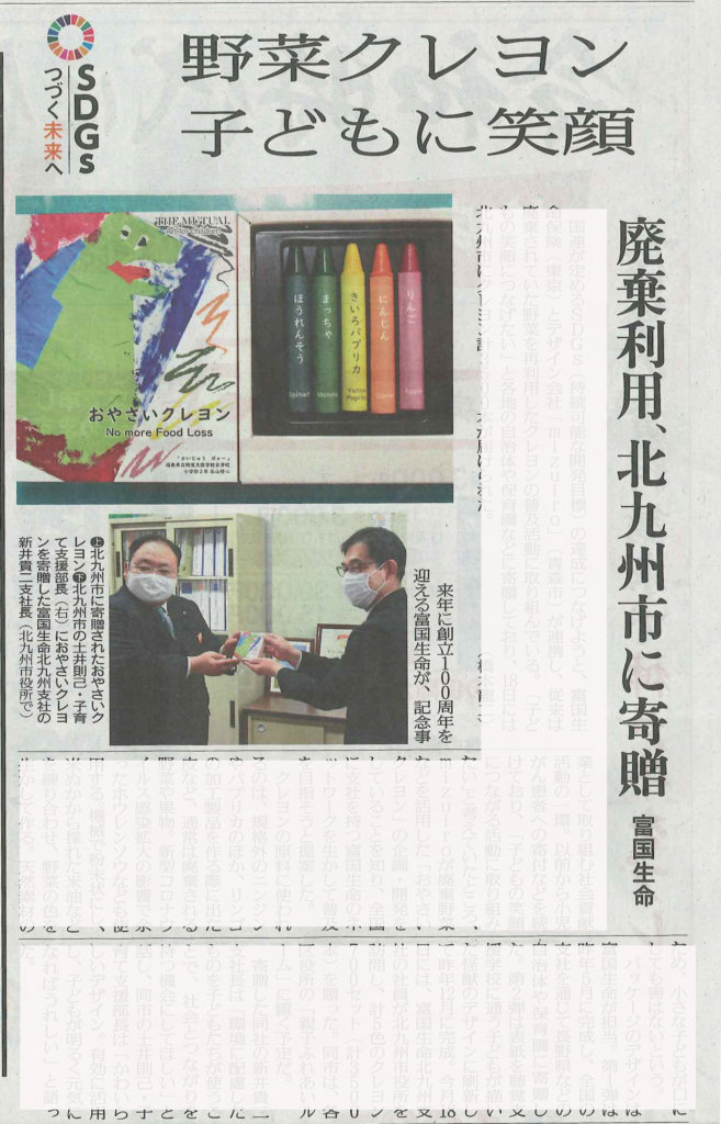 限定版のオリジナル「おやさいクレヨン」を北九州市に700箱寄贈されました。