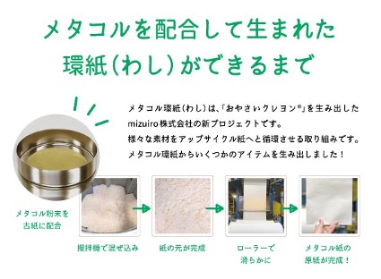 metacol™を配合した紙素材「環紙(わし)」を開発し、